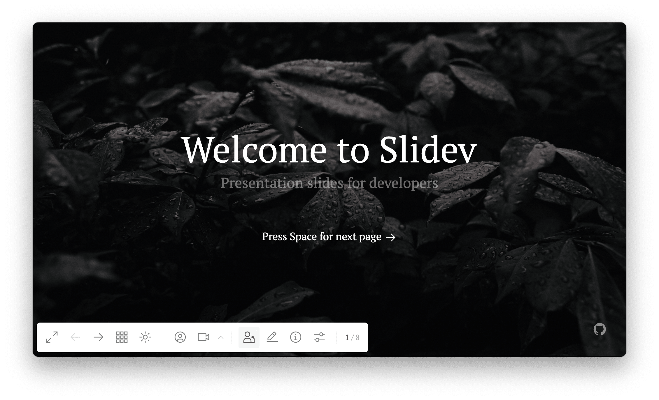 To enter the presenter mode, you can click the button in the navigation panel, or visit http://localhost:<port>/presenter.